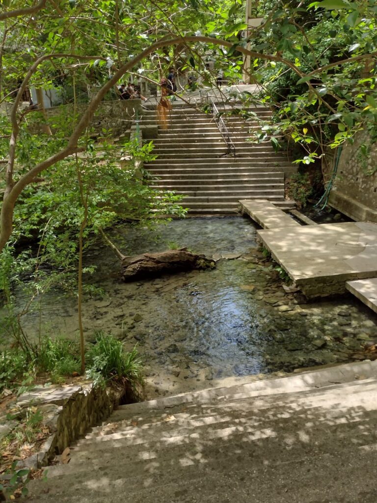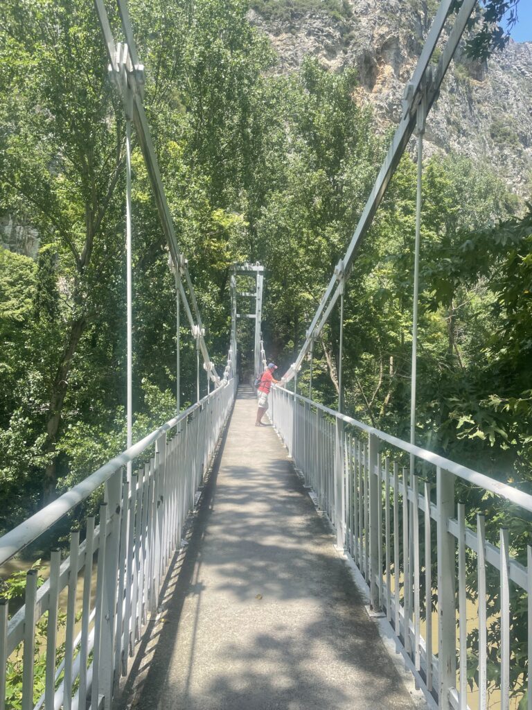 Heute wollen wir den Olymp umrunden. Auf dem Weg wieder Störche, weite Getreidefelder und Obstplantagen, sowie unendlich grüne Wälder. Zuerst geht’s ins berühmte steile Tempe-Tal. Wo eine Hängebrücke den breiten Fluss Pinios überquert. Hier besuchen wir auch die Kirche und Bergquelle, die der heiligen Paraskevi gewidmet ist, der Heiligen der Blinden und Augenkranken.