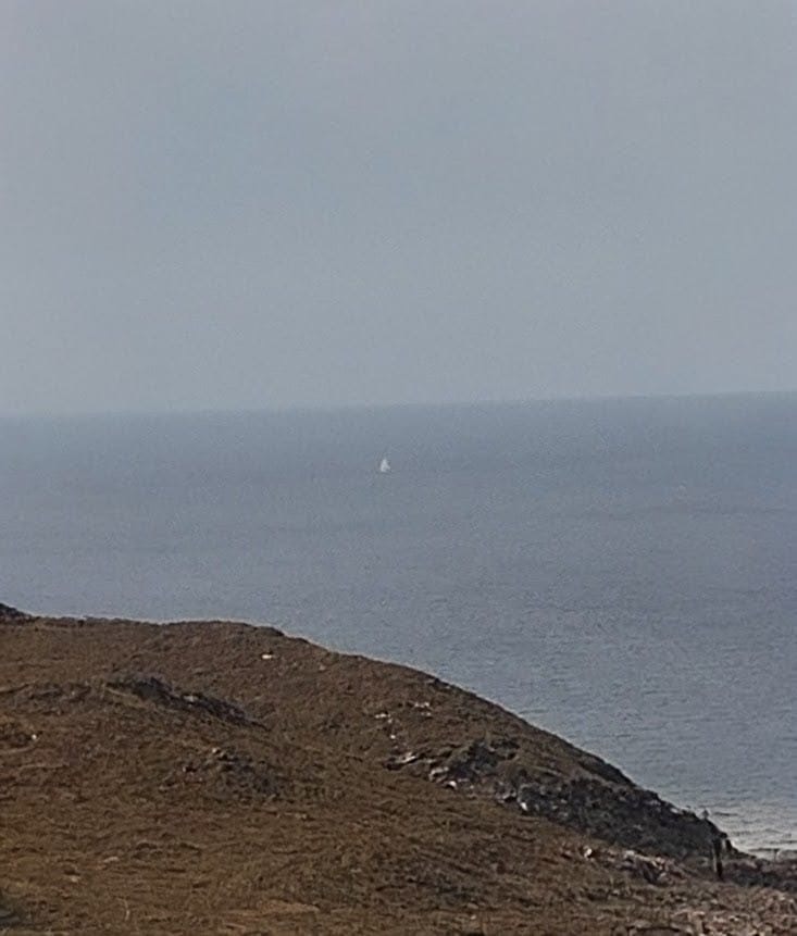 Wir verbringen die drei Tage mit Faulenzen, Einkaufen beim neuen Bäcker und Essen gehen (beim Patrionisis, der „Italiener“ neben der Kirche hat geschlossen), Fahrrad fahren zum Kloster und hinter dem Ort zur Ostrunde (mehr schiebend als fahrend). Dabei entdecken wir auch ein winziges weißes Dreieck von Lesbos kommend – die Illyrian, wie wir richtig vermuten!